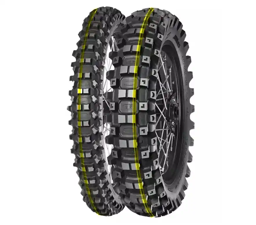 Pro jezdce, který nepřijímá kompromisy bez ohledu na podmínky a rychlost.Pneumatika TERRA FORCE-EX MH se vyznačuje zdokonaleným dezénem, kostrou a profilem s dobře rozmístěnými agresivními hroty (cca 17 mm), které přispívají k tvrdosti. tvrdé půdě, zatímco boční hroty s kohoutkem. pružná bočnice pomáhají tlumit nárazy a zajišťují maximální trakci a směrovou stabilitu.Dostupné ve verzích- Super (rychlé enduro) se pozná podle charakteristického žlutého pruhu: střední konstrukce kostry a směs, speciálně navržená pro vysokorychlostní enduro, ideální do tvrdých suchých podmínek.-Super Light (technické enduro) se pozná podle charakteristického zeleného pruhu: lehká, měkká konstrukce kostry a gumová směs, speciálně navržená pro technické enduro, ideální do mokrých kluzkých podmínek.- Super soft (extrémně endu lehká konstrukce kostry s ultrapryžovou směsí, speciálně navržená pro extrémní enduro při nízkých rychlostech, ideální do mokrých kluzkých podmínek.